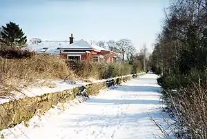 Murtle acquired some differences in its appearance, especially the small canopy after it was rebuilt following after a fire on 17 August 1909 that destroyed the original wooden main station building.[3] In 1963 the station, closed since 1937, was on a single track section of line with the agent's house still standing together with the old station building.[7]