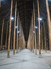 A second and much larger Stick Shed, with double the capacity, was erected in 1942/43 at Murtoa using poles largely supplied from forests at East Gippsland and Mt Cole near Beaufort. This second shed was demolished in 1975.[2]