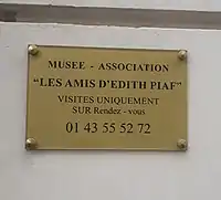 - ↑ "Le Musée d'Edith Piaf: a little-known Paris museum". The Guardian. June 1, 2012. Retrieved 6 July 2016.