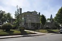 The Laura Musser McColm Historic District, also known as the Muscatine Art Center, is a nationally recognized historic district located in Muscatine, Iowa, United States. It was listed on the National Register of Historic Places in 2017. Contributing properties include the 1908 residence, the carriage house from the 1920s, and the Japanese garden that was installed in 1929.[2] The house was built for Laura Musser and her husband Edwin McColm by Laura's father Peter. It was designed by Muscatine architect Henry W. Zeidler. It contains 12 rooms that flank large corridors on both floors. After Edwin's death in 1933 Laura married William T. Atkins in 1938 and resided at his home in Kansas City, Missouri. She retained ownership of this house, and visited frequently, until her death in 1964.[3] The following year her heirs donated the estate to the art museum along with a $100,000 endowment to maintain the house. A $1.5 million renovation of the facility was completed in 2017.[2]