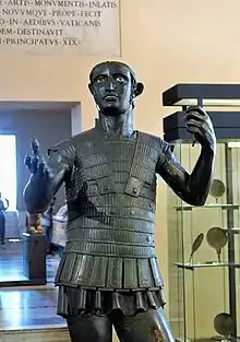The Mars of Todi is an ancient Etruscan bronze statue from the late 400s BC; in the Gregorian Etruscan Museum.