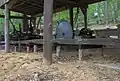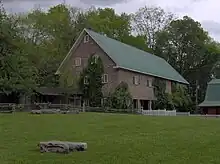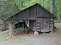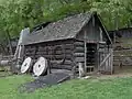 Along with cabins and barns, the museum displays most types of buildings that would be found on a typical pioneer Appalachian farm, including smokehouses, corn cribs, animal pens, mills, an underground dairy and cellar, and a loom house. Blacksmith shops, a working saw mill, a rural schoolhouse, a log church, a broom and rope shop, and a leather shop— all fully equipped with contemporary materials— are also on display and are occasionally used for demonstrations.[5]