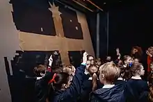The museum focused on the Eureka Stockade as the place of origin of Australia's democracy.[5][6] The museum housed the original Eureka Flag, upon which the rebels swore an oath to the flag as a symbol of defiance against the ruling colonial government.[7] The flag was on loan from the Art Gallery of Ballarat.[8][9]