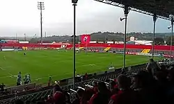 By the early 21st century, the ground consisted of four terraces, one stand, three tribunes, a jogging track, and two VIP stands on the west side. This configuration provided a seating capacity of 3,450, with terracing giving a total capacity of approximately 9,000.[7][5][8]