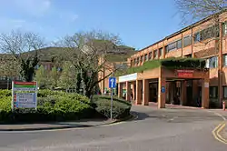 The first major development of the hospital, the Queen's Building, which provides accident and emergency, orthopaedics, endoscopy and ophthalmics as well as therapy services, was opened by Elizabeth II in 1987.[7] The Duchess Building, which provides medical and care of the elderly, outpatients, oral surgery and orthodontics, dermatology, diagnostic imaging, pharmacy and paramedical support, was opened by the Duchess of Gloucester in 1995.[8]