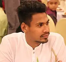 During the Asia Cup held in the next month, he was again sidelined from the team due to his side strain,[44][45] playing only the first three games.[46][47][48][49] He was able to play against Australia, India and New Zealand in the 2016 ICC World Twenty20 held in India in March.[50][51][52] He became the first Bangladeshi bowler to grab five wickets in the history of T20 World Cup after taking five wickets for 22 runs against New Zealand.[53] He took total of 9 wickets in three matches in the 2016 edition.[54] He was named as 12th man in the 'Team of the Tournament' for the 2016 T20 World Cup by the ICC.[55]