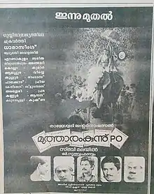Mutharamkunnu P.O. is a 1985 Indian Malayalam-language romantic comedy film directed by Sibi Malayil (in his directorial debut) from a screenplay by Sreenivasan based on a story by Jagadish. It stars Mukesh, Lizy, Nedumudi Venu, Sreenivasan and Jagadish.[1] The plot tells the story of a newly arrived postmaster in a village where people uplift the sport of gatta gusthi (wrestling), he falls in love with the daughter of a retired wrestler who challenges him for a duel with a reigning champion Dara Singh. The film was remade in Hindi as Kushti (2010).[2] Despite being an average grosser at box office the film received positive critical reception. Over the years, the film has accumulated a cult following and huge fan base.[3]