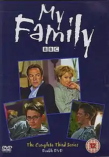 The third series of the BBC family sitcom My Family originally aired between 6 September 2002 and 25 December 2002. The series was commissioned following consistently high ratings for the second series. The opening episode of the series, "Absent Vixen, Cheeky Monkey", re-introduces the five main characters, but also writes out the character of Janey, who plays only a recurring role in this series. In Episode 3, Abi Harper, played by Siobhan Hayes, is introduced to replace Janey. All fourteen episodes in the third series are thirty minutes in length, including the Christmas special. The series was once again produced by Rude Boy Productions,[1] a company that produces comedies created by Fred Barron.[2] The series was filmed at Pinewood Studios in London,[3] in front of a live audience.[4]