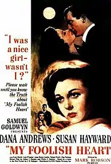 My Foolish Heart is a 1949 American romantic drama film[3] directed by Mark Robson, starring Dana Andrews and Susan Hayward. It relates the story of a woman's reflections on the bad turns her life has taken.