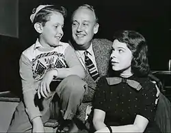 Radio cast of the program. From left: Bobby Alford ("Jeep" Allison), Paul McGrath (Dr. Martin Allison), and Joan Lazer (Peggy Allison).