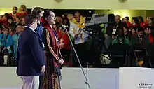Aung San Suu Kyi greeting athletes at the 2013 Special Winter Olympics Opening Ceremony in Pyeongchang