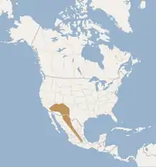 Its range includes parts of the Southwestern United States and the Mexican state of Chihuahua. It is found in a range of elevations from near sea level to 2,806 m (9,206 ft) above sea level.[1]