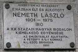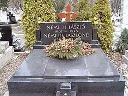 László Németh (18 April 1901 – 3 March 1975) was a Hungarian dentist, writer, dramatist and essayist. He was born in Nagybánya the son of József Németh (1873–1946) and Vilma Gaál (1879–1957). Over the Christmas of 1925, he married Ella Démusz (1905–1989), the daughter of János Démusz, a keeper of a public house. Between 1926 and 1944 they had six daughters, but two of them died in infancy. In 1959 he visited the Soviet Union. In the last part of his life he lived and worked in Tihany. He died from a stroke on 3 March 1975 in Budapest and was buried in Farkasréti Cemetery, Budapest, where he shares a grave with his wife.