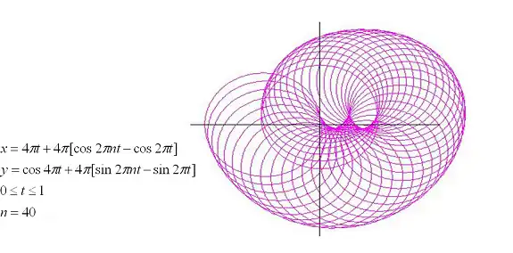 Let us take u, the unit circle centered at the origin and α, the astroid. The n-curve of u is given by,