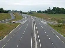 The N18 road is a national primary road in Ireland, connecting the cities of Limerick and Galway. Ennis and Gort are two major towns on the route, and Shannon Airport is reached via the connecting N19. The west coast route continues on to Sligo as the N17. The section from Limerick to the N19 junction forms part of European route E20, and the entire route is part of the proposed Atlantic Corridor.[1] The section of motorway from Shannon to Claregalway is designated the M18 motorway. The tolled Limerick Tunnel forms part of the route.