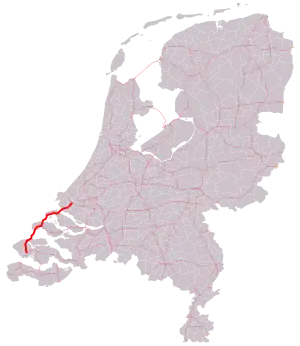 N57, or rijksweg 57, is a 77 km long national road in the provinces of South Holland and Zeeland in the Netherlands. It is also known as the dammenroute (Route of dams).