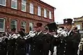 It has taken part in receptions for Bill Clinton and the Pope in Riga. Foreign conductors have contributed to the development of the band. The NAF Staff band has represented Latvia in several international brass band festivals in many European countries such as Lithuania, Italy, and Belgium.[3] On September 15, 2009, the band joined the Latvian National Armed Forces Staff Battalion.[4][5][6]