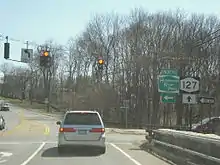 New York State Route 127 (NY 127) is a 6.36-mile (10.24 km) north–south state highway in Westchester County, New York, in the United States. It begins at an intersection with U.S. Route 1 (US 1) in the village of Mamaroneck and ends at an interchange with Interstate 287 (I-287) in the city of White Plains. The route also connects to the Hutchinson River Parkway in the town of Harrison. NY 127 was assigned as part of the 1930 renumbering of state highways in New York; however, parts of the road had been state-maintained since the 1910s. Within White Plains, NY 127 is maintained by Westchester County as County Route 30 (CR 30). The concurrent county route designation is unsigned, as are all county routes in Westchester County.