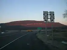 New York State Route 443 (NY 443) is an east–west state highway in the Capital District of New York in the United States. The route begins at an intersection with NY 30 in the town of Schoharie and ends 33.44 miles (53.82 km) later at a junction with U.S. Route 9W (US 9W) and US 20 in the city of Albany. It ascends the Helderberg Escarpment in the towns of Berne and New Scotland. Within the town of Bethlehem and the city of Albany, NY 443 is known as Delaware Avenue.