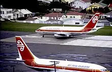 Boeing 737s in hybrid Air New Zealand and NAC livery at Wellington, 1980