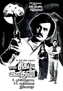Naan Sigappu Manithan (transl. I am a Red Man) is a 1985 Indian Tamil-language action thriller film directed by S. A. Chandrasekhar. The film stars Rajinikanth, K. Bhagyaraj and Ambika with music by Ilaiyaraaja. It was a commercial success at the box office. The film is a remake of Hindi film Aaj Ki Awaaz.[1] Vijay played a child artist role in this film.[2]