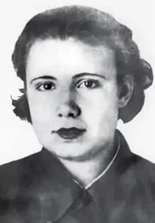 Nadezhda Terentyevna Volkova (Russian: Наде́жда Тере́нтьевна Во́лкова; 20 June 1920 – 26 November 1942) was a courier in an underground Komsomol cell during the Second World War. She was posthumously declared a Hero of the Soviet Union on 8 May 1965, over twenty years after death in the war.[1]