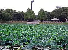 The garden contains the Osaka Museum of Natural History as well as a 1,000 species collection of flowers and trees around a central pond.