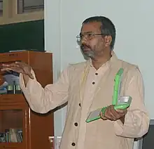Nagarjuna G. (Nagarjuna Gadiraju) works in the Homi Bhabha Centre for Science Education, Tata Institute of Fundamental Research in Mumbai, India. His major research interests include Science Education, Cognitive Science, History and Philosophy of Science and Structure and Dynamics of Knowledge. As an activist he focuses on promoting free knowledge and free software and serves as the chairperson of Free Software Foundation of India.