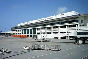 Naha Airport (那覇空港, Naha Kūkō) (IATA: OKA, ICAO: ROAH) is a second class airport located 4 km (2.5 mi) west of the city hall[3] in Naha, Okinawa. It is Japan's seventh busiest airport and the primary air terminal for passengers and cargo traveling to and from Okinawa Prefecture, Japan. It handles scheduled international traffic to Taiwan, Hong Kong, South Korea, Thailand, Singapore and mainland China. The airport is also home to Naha Air Base of the Japan Air Self-Defense Force.