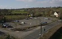 In 2012, the station had a free car park with 120 spaces, but this was frequently full by 7:30am on weekdays,[38] leading commuters to park on local roads,[39] prompting complaints from Backwell residents.[40] Plans to extend the car park by 200 spaces were drawn up in 2009, with North Somerset Council describing the scheme as "necessary", as the lack of spaces limited the number of people who could feasibly use the station for commuting due to Nailsea being too far from the station to be an easy walk, causing people to drive to the station. That peak passengers filled the car park then meant there are no spaces for offpeak users, limiting leisure travel.[38] North Somerset Council approved the construction of the extension on 17 April 2012, and further approved the car park becoming pay and display - all car parks in Nailsea had previously been free.[39][41][42][43][44] Work began in January 2014, and was completed in June the same year - 162 additional car parking spaces were created, drainage was improved and CCTV was installed. The scheme, which cost £700,000, came in £50,000 under budget and was paid for using money from the Local Transport Plan and Community Infrastructure Levy.[8][38][45] Parking prices were raised in 2017 to equalise the cost with Yatton railway station, and thus dissuade people from driving from Yatton to Nailsea for cheaper parking.[9]