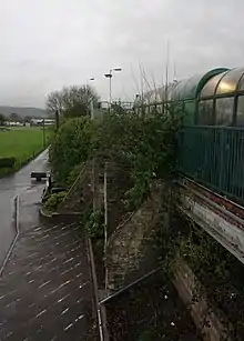 There is no wheelchair access to the southbound platform; the ramp to the northbound platform is steeper than 1 in 12, making it unsuitable for wheelchair users, and there is a large height difference from the train doors to the platform. In 2011 the government announced a £37.5 million scheme to improve stations under an "Access For All Mid-Tier programme", of which £1,023,000 was to go towards building new ramps at Nailsea and Backwell.[46][47][48] The works were due to start in 2013, but were delayed until 2014 due to a need to repair subsidence on the embankment and wait for works on the car park to be completed.[37] However, due to the delays the funding was withdrawn.[49] Further funding was secured in 2015, but plans for ramps were shelved entirely in 2016 due to fears of further subsidence. Great Western Railway have stated they are looking at installing lifts instead.[50][51]