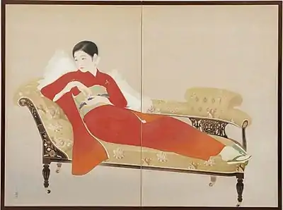 Like his teacher, Nishiyama Suisho, Daizaburō is best known for his paintings of women.[2] The Art Institute of Chicago and the Honolulu Museum of Art are among the public collections holding paintings by Nakamura Daizaburō.