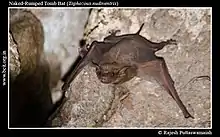 The naked-rumped tomb bat (Taphozous nudiventris) is a species of sac-winged bat in the family Emballonuridae.[2] Found in northern Africa, the Middle East, and southeastern Asia, its natural habitats are dry savanna, subtropical or tropical dry shrubland and forests, caves, and arid areas.