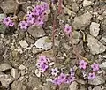 Purple mat, Nama demissum, grows in the American desert southwest, such as the Mojave Desert, and parts of Mexico on dry sandy or gravelly flats from 2000' to 5500' in creosote bush scrub.[1]