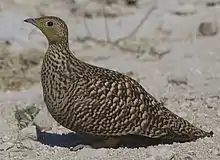 The Namaqua sandgrouse (Pterocles namaqua), is a species of ground-dwelling bird in the sandgrouse family. It is found in arid regions of south-western Africa.
