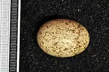 Breeding takes place at any time of the year and is dependent on rainfall. Usually the nests are solitary but sometimes several pairs of birds choose sites near each other. The nest is a scrape in the earth, scantily lined with dried plant material. Two or three pinkish-grey eggs with brown markings are laid over the course of a few days. Incubation starts after the last egg has been laid and lasts about 22 days. The female does the incubation by day and the male does a longer shift at night, starting about two hours before sunset and finishing two hours after dawn.[10] The chicks are precocial and able to leave the nest on the day they are hatched. The male brings them water absorbed on the specially adapted feathers of his breast. The chicks grow rapidly; they are fully feathered at three weeks and able to fly at six.