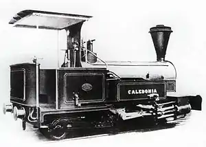 In 1904, a single 0-4-2IST locomotive named Caledonia was acquired from Dick, Kerr & Company of Kilmarnock in Scotland. On a saddle-tank locomotive the water tank is mounted astride the locomotive's boiler, while on the much less common inverted saddle-tank locomotive, the boiler is nested in the water tank. The locomotive was an oil-burner and used outside mounted Morton's valve gear. Apart from being named, it was also numbered 11 on the Cape Copper Company locomotive roster.[1]