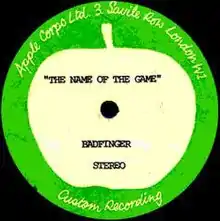 After the release of their album No Dice, Badfinger began work on an untitled follow-up.[1] Geoff Emerick produced sessions for the songs that were to be on the album, among them being "Name of the Game".[1] "Name of the Game" was also intended to be released as the lead single from this album, backed with "Suitcase", a track written by Joey Molland, but, despite efforts from George Harrison (who was impressed greatly by the track) to remix the song, the single, as well as the rest of the album, were canceled due to input from Phil Spector.[1][2] This single edit appeared on some reissues of Straight Up.