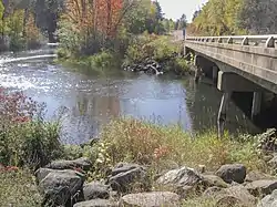 According to the Geographic Names Information System, the river's name has also been spelled Namakagon, Namekagan, and Namekagun; the United States Board on Geographic Names issued a decision setting "Namekagon" as the river's spelling in 1933.[1] Its name is derived from the Ojibwe language Namekaagong-ziibi, meaning "river at the place abundant with sturgeons."