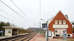 Namps-Quevauvillers is a railway station located in the commune of Namps-Maisnil and near Quevauvillers, in the Somme department, France. The station is served by TER Hauts-de-France trains from Amiens to Abancourt.[2] The station is one of several low importance stations along the 139 km long line. According to the SNCF, in 2003 it averaged 5 passengers per operating day.[1]
