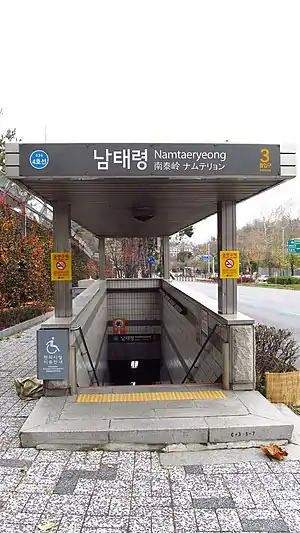 - ↑ "Namtaeryeong". Seoul Metro. Archived from the original on 2017-10-30. Retrieved 2017-07-18.