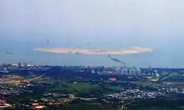 Nanhai Pearl Artificial Island (Chinese: 南海明珠人工岛) is an artificial island under construction off the coast of Holiday Beach in Haikou Bay, Haikou, Hainan, China.[1][2] The island is owned and being developed by HNA Group. As of April 2016, it consists of a roughly circular body of land with a bridge providing access to and from the shore. It is envisioned to ultimately become a visitor attraction with hotels and to eventually take the shape of a yin-yang symbol and be about 266 hectares.[3]
