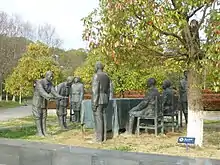 Surrender of the Japanese troops in Central China (1945-09-18), as depicted in one of the sections of the Victory Memorial at the SS Zhongshan tourist area in Wuhan. General Naozaburo Okabe (left) gives his sword to the Chinese General Sun Weiru