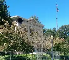 The Napa County Courthouse Plaza is a complex in Napa, California, which consists of the Napa County Courthouse and the Hall of Records. The two buildings occupy an entire city block, which includes open areas and landscaping to create the site's plaza setting. The High Victorian Italianate courthouse was built in 1878 to replace the original 1856 courthouse. The courthouse continues to serve as the seat of Napa County government. The 1916 Hall of Records is a federally sponsored records building designed by William H. Corlett. The Renaissance Revival building represents an early use of reinforced concrete as a building material; the material became popular nationwide in the 1920s.[2]