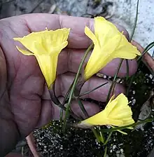 Narcissus hedraeanthus is a species of the genus Narcissus (daffodils) in the family Amaryllidaceae. It is classified in Section Bulbocodium, and is among the smallest species in that genus. It flowers in December.