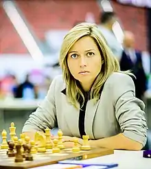 Natalia Oleksandrivna Zhukova (Ukrainian: Наталія Олександрівна Жукова; born 5 June 1979) is a Ukrainian chess grandmaster and two-time European women's champion. She won several age-group titles as a teenager, at both the European and world levels. She has also won several international women's tournaments. Zhukova has played for the Ukrainian women's national team since age 17 in 1996, the same year she won the Ukrainian women's championship in her debut. She played board one on the winning Ukrainian team at the 2006 Women's Chess Olympiad.
