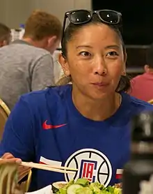 In September 2012, Nakase began a yearlong internship in the NBA with the Los Angeles Clippers, working under the team's video coordinator.[3] She became the team's assistant video coordinator.[10] She was one of 15 women of Asian or Pacific Islander heritage honored at the White House in 2013 as their Champions of Change.[14][15] During the two-week 2014 NBA Summer League in Las Vegas, Nakase was an assistant coach for the Clippers, becoming the first woman to sit on the bench as an NBA assistant.[lower-alpha 1][6][10][18]