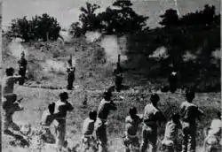 In May 1951, vice-president Yi Si-yeong resigned. In June, it was reported that five billion won in funds for the National Defense Corps had been embezzled.[11] On 12 August 1951, five commanding officers were executed as persons in charge of the incident.[2][12]