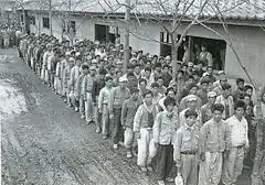 406,000 drafted citizens were deployed in 49 training units.[5] The National Defense Corps soldiers were then ordered to march south. However, funds for food purchases were embezzled by the National Defense Corps Commander Kim Yun-geun (김윤근; 金潤根; also spelled Kim Yoon-keun or Kim Yungun), son-in-law of Defense Minister Shin Song-mo.[6] This led to the deaths of numerous soldiers from either malnutrition or frostbite.