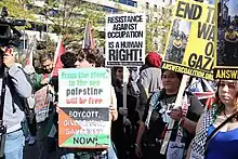 The 2023 Israel–Hamas war has sparked numerous protests, demonstrations, and vigils across the world. The protests have focused on a variety of issues related to the conflict and have been held on varying scales since the October 7 Hamas attacks.[1] The march in DC was one of many held on November 4 in support of Palestine and a cease-fire with demonstrations being held across the United Kingdom, Europe and Latin America.[2]